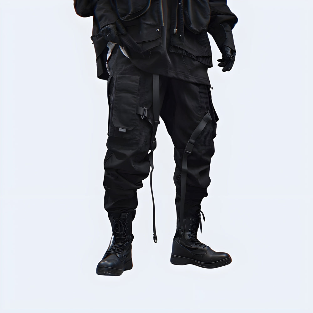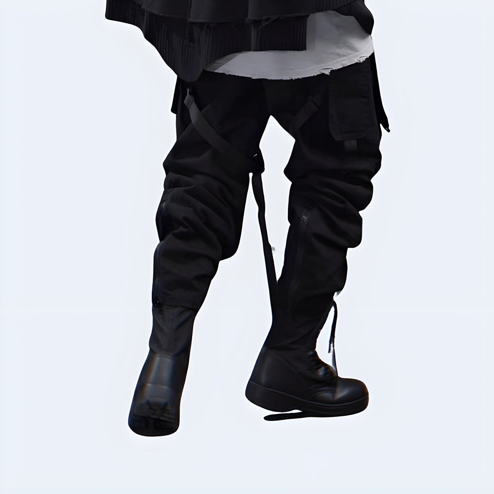 If you're in search of the perfect pants. our black jogger cargo pants is the ideal choice to complement your funeral-inspired fashion right down to your fingertips! Additionally. we encourage you to explore our techwear pants collection to discover all our edgiest designs. And to enhance your overall style. we provide an extensive selection of techwear men options.