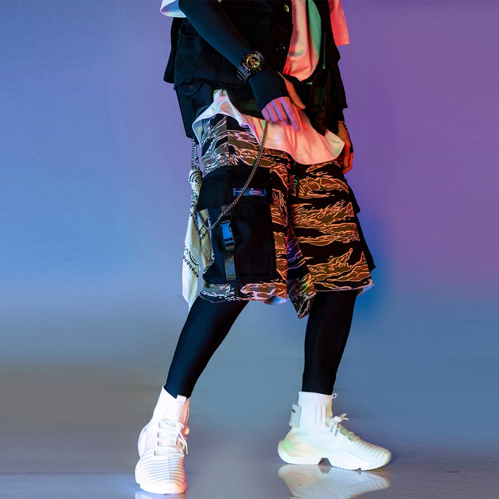 Amidst harajuku's cyberpunk labyrinth. Cargo Shorts Camo defy conformity's grip.Introducing the Cargo Short Camo. a revolution in streetwear. fusing Harajuku cyberpunk aesthetics with the untamed spirit of ninja rage. These shorts are not just a fashion statement; they embody a relentless rebellion. These bottoms boast a multitude of features that will leave your adversaries trembling.With multiple pockets strategically placed. your essentials are always within reach. enabling swift ninja-like manoeuvres through the urban jungle. Adjustable straps add a touch of urban warfare aesthetic while keeping your gear secure during intense manoeuvres. The flexible waistband adapts to your every move. granting you unrivalled freedom and agility. Drenched in the shadows of a camouflage colour palette. these shorts become your armour. blending seamlessly into the enigmatic streets. Embrace the essence of Harajuku's cyberpunk zeitgeist. where fashion meets rebellion. and let the Cargo Short Camo unleash the dormant ninja within. Remember. the night is your ally. and the shadows are your canvas. If you're in search of the perfect shorts. our light blue denim shorts are the ideal choice to complement your funeral-inspired fashion right down to your fingertips! Additionally. we encourage you to explore our techwear shorts collection to discover all our edgiest designs. And to enhance your overall style. we provide an extensive selection of techwear men options. |