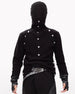 This dark button-up turtleneck knit sweater embodies a modern. minimalist aesthetic. Crafted from a soft. dense knit. it offers both structure and comfort. The high neckline. fastened by subtle buttons. creates a sleek. architectural silhouette. Versatile in its darkness. it serves as a foundational layer or a standalone statement piece. The design merges utilitarian detail with elegant simplicity. making it an essential component for a curated. monochromatic wardrobe. It's a timeless piece that ages with understated grace.