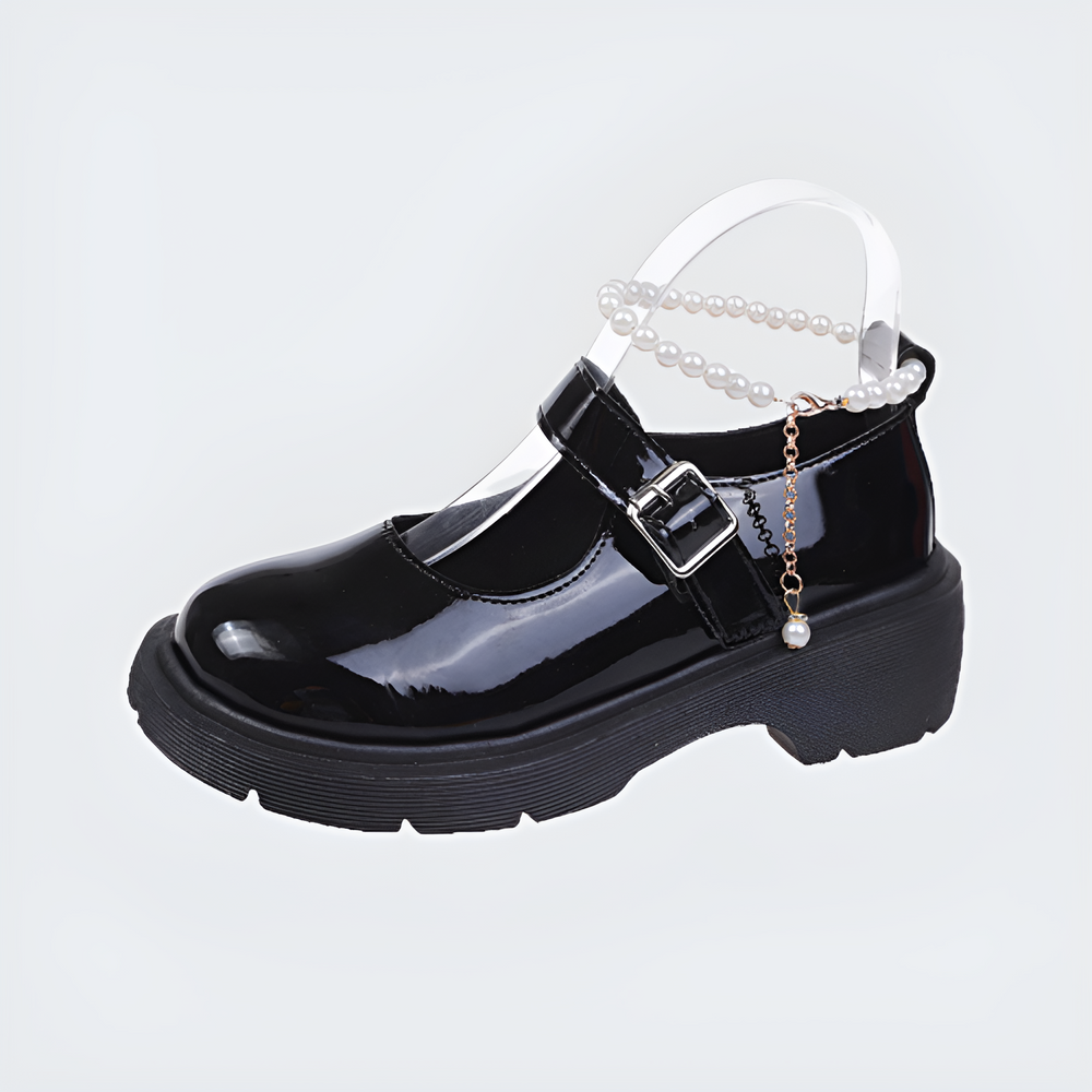 Step into the world of cosplay and school uniforms with iconic Japanese School Girl Shoes. Black. low-heeled. and adorned with a stylish foot strap. these shoes are a perfect fusion for tradition and trend.