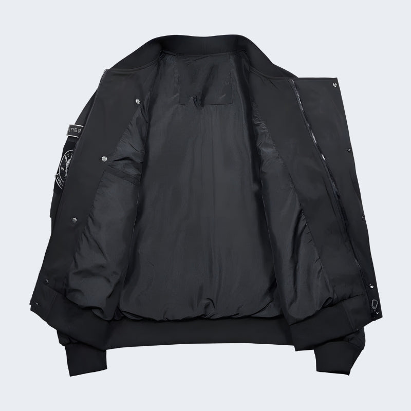 The Bomber Jacket Techwear is a stylish and functional outerwear piece that is perfect for the modern. tech-savvy individual. Made with a durable. water-resistant shell and padded with insulation to keep you warm and dry in any weather. this jacket is perfect for both casual and active wear. The jacket features a full-zip front closure and zippered pockets.