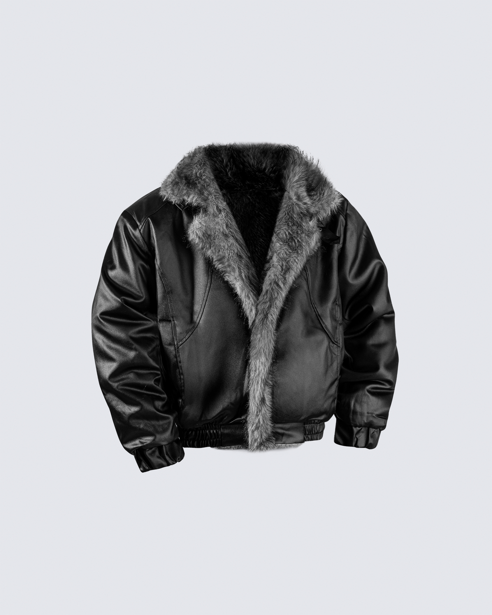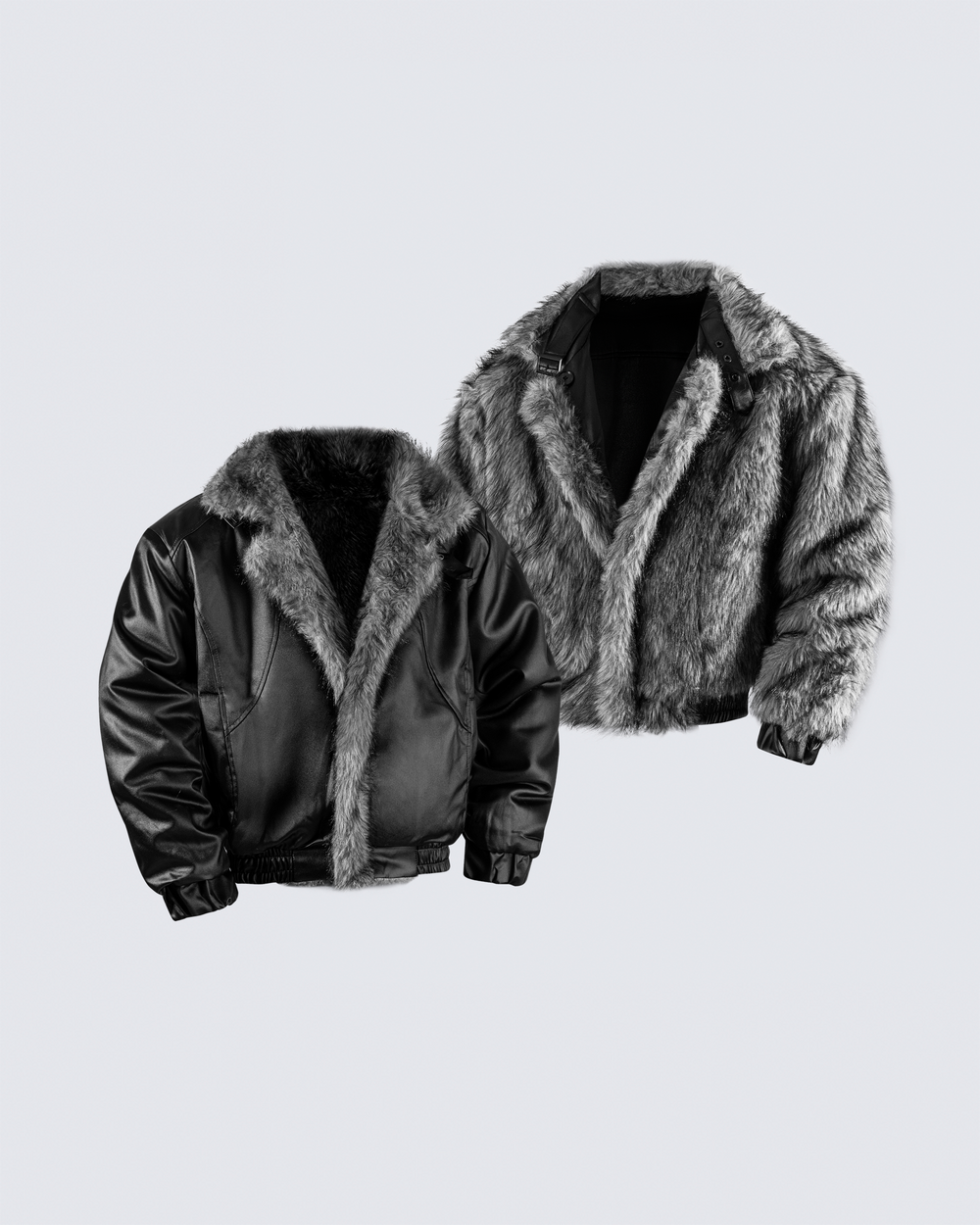 Design Elements: Reversible design, faux fur side & faux leather side, elasticated hem, adjustable cuffs