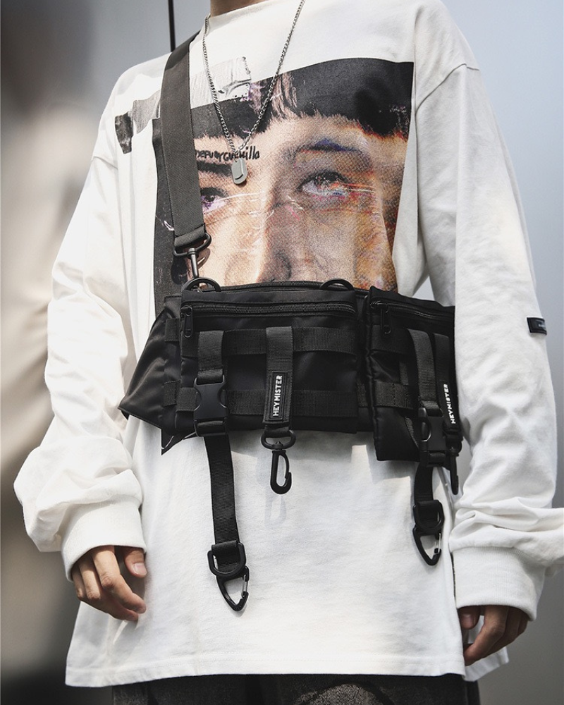 Inspirations: Rabock. Cyberpunk. Streetwear. Futuristic Available In Black Material: Nylon. Polyester Features: Detachable small bag; shoulder strap...