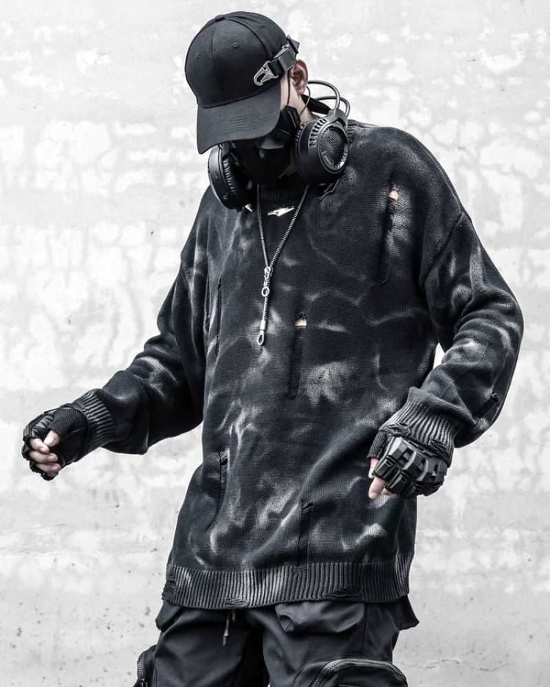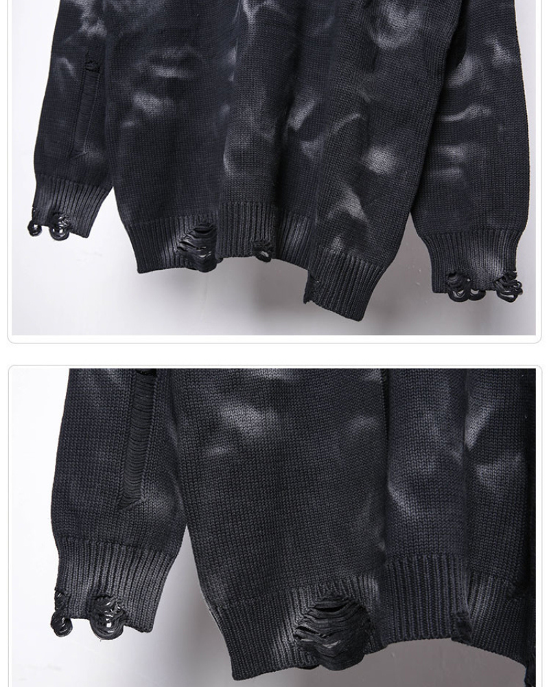 Turn heads and embrace the grit of the city in our Street-Style Washed Tie-Dye Distressed Sweater. Expertly stone-washed for a vintage lived-in feel. each piece features a one-of-a-kind tie-dye pattern and deliberate distressing for an authentically rugged edge.Whether you're hitting the streets or chilling with friends. this sweater is a versatile wardrobe essential that effortlessly merges style with comfort.