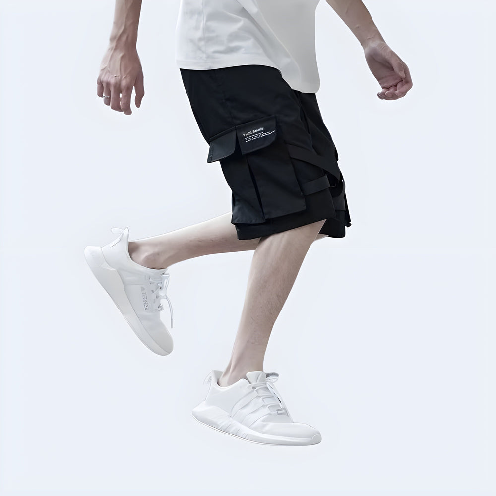 Amidst the ruins. Techwear Cargo Shorts embody survival in desolation.Introducing Techwear Cargo Short. a harbinger of post-apocalyptic resilience. With Techwear Cargo Shorts. prepare to traverse the ruins with relentless determination. These bottoms embody an apocalyptic aesthetic. where functionality merges with ominous allure.These haunting cargo pants. adorned with a buckle waist. symbolise resilience amidst chaos. The left and side pockets. like cryptic caverns. safeguard precious relics of survival. Their depths conceal the tools of a post-apocalyptic nomad - scavenged trinkets. meagre rations. and the means to ensure dominance in the wasteland. With each buckle fastened. the wearer's resolve strengthens. forging an unbreakable bond between man and garment. In this desolate realm. the Techwear Cargo Shorts become an embodiment of survival. a testament to the indomitable spirit that endures amidst the ruins. If you're searching for the perfect Short item. our travel shorts with hidden pockets is the ideal choice to perfectly complement your funeral-themed style. right down to your fingertips! We also encourage you to explore our techwear shorts collection to discover all our darkest and most captivating designs. And to complete your overall look. we offer a wide range of options from the techwear men. |
